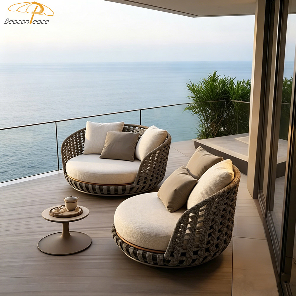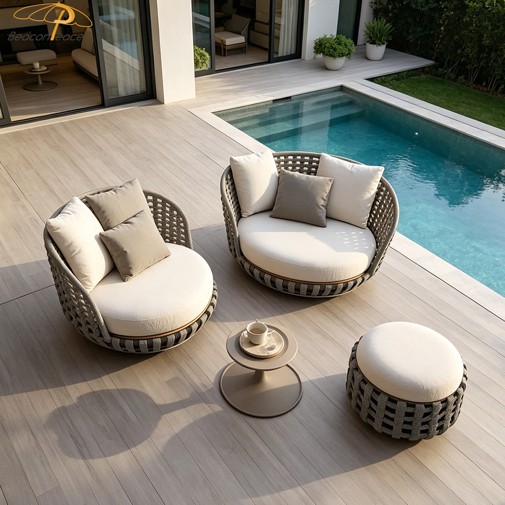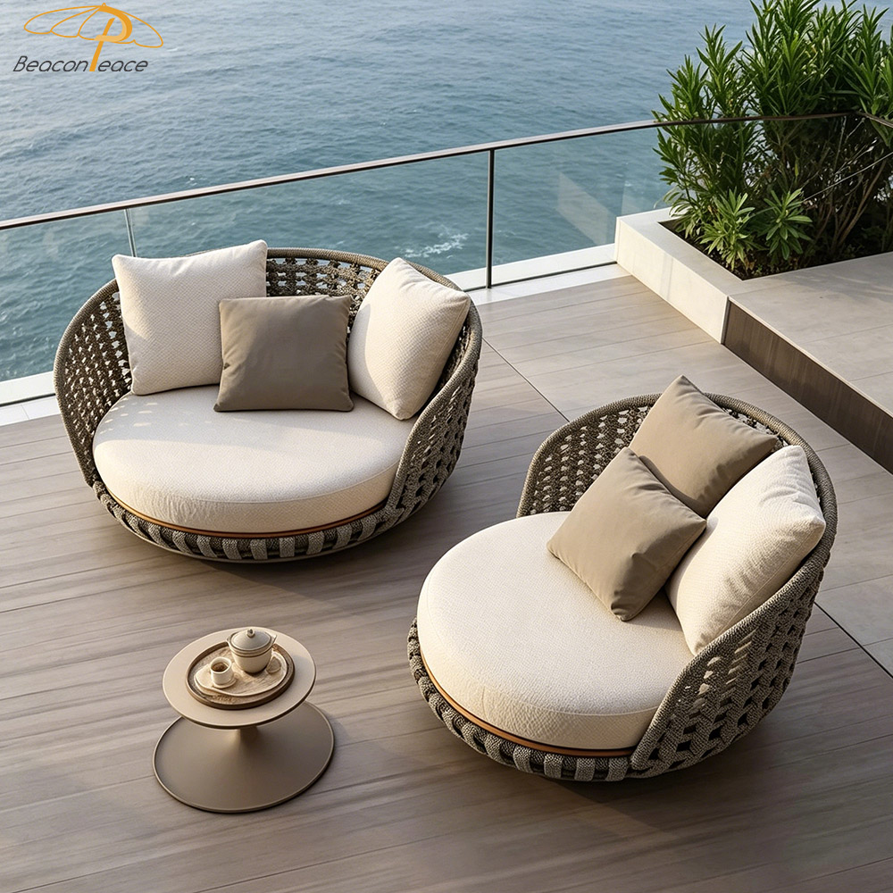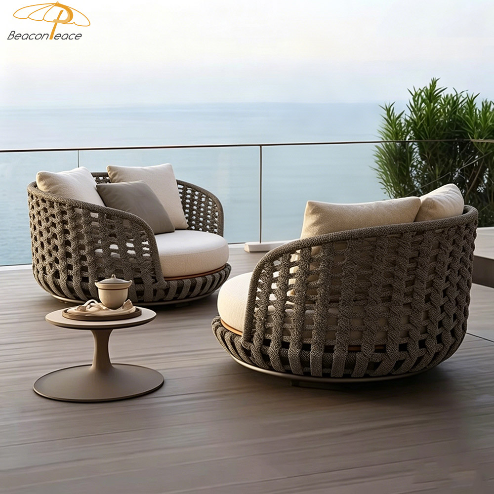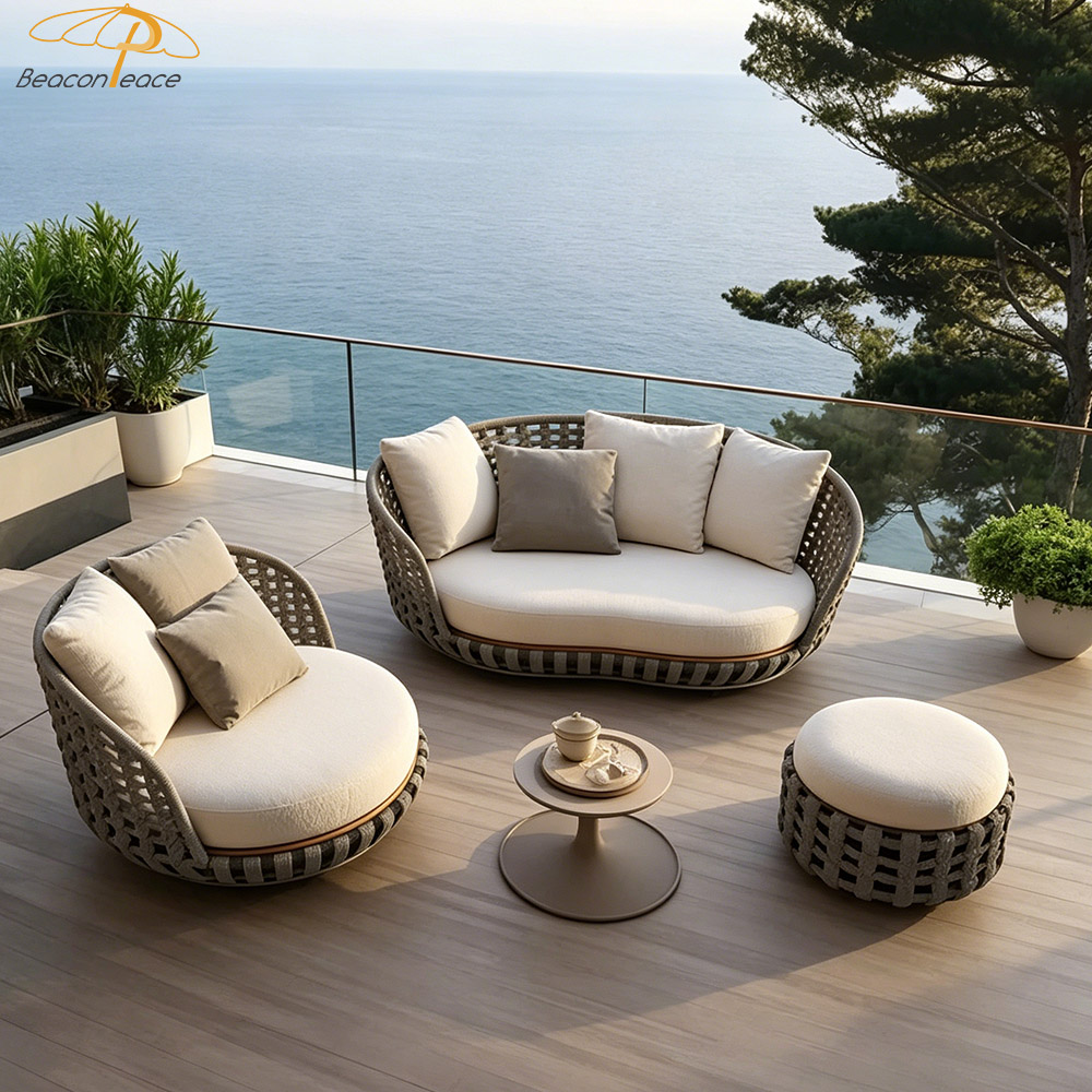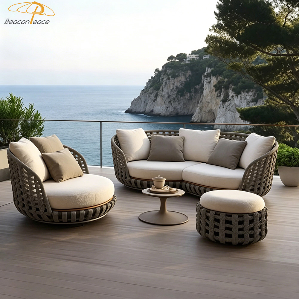 This outdoor aluminum and wicker sofa is designed to create a premium outdoor leisure experience. Constructed with a high-strength aluminum alloy frame, it is lightweight yet exceptionally sturdy, naturally possessing rust-proof and corrosion-resistant properties that allow it to effortlessly withstand harsh outdoor environments. The hand-woven outdoor wicker features a textured, natural finish that not only enhances breathability but also adds a unique touch of natural beauty. The sofa is equipped with professional water-repellent cushions, offering a multitude of benefits—including stain resistance, easy cleaning, quick drying, and breathability—to ensure you enjoy lasting comfort.