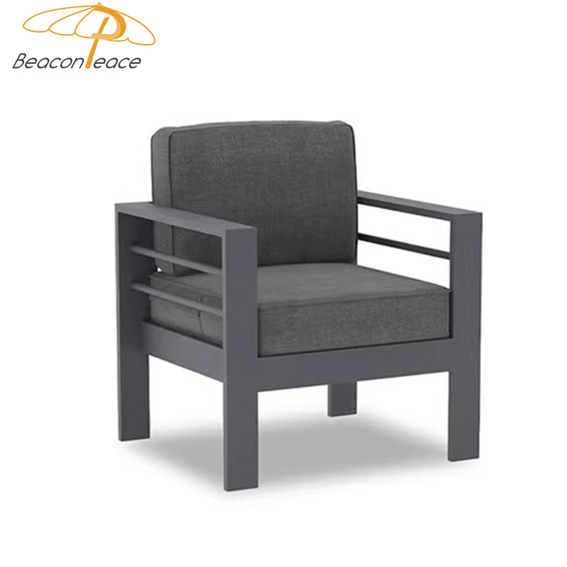This outdoor aluminum sofa is made of high-strength aluminum alloy frame, which is rustproof and corrosion-resistant, suitable for various outdoor environments. The design is simple and modern, and the seat cushions are made of waterproof fabric, which is comfortable and durable, and can withstand prolonged exposure to sunlight and rain. It is the perfect choice for relaxation, whether it is a balcony, garden or terrace. Modular design, easy to assemble and clean, make your outdoor space more exquisite and comfortable.