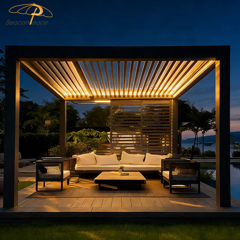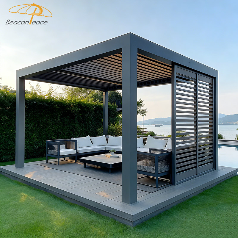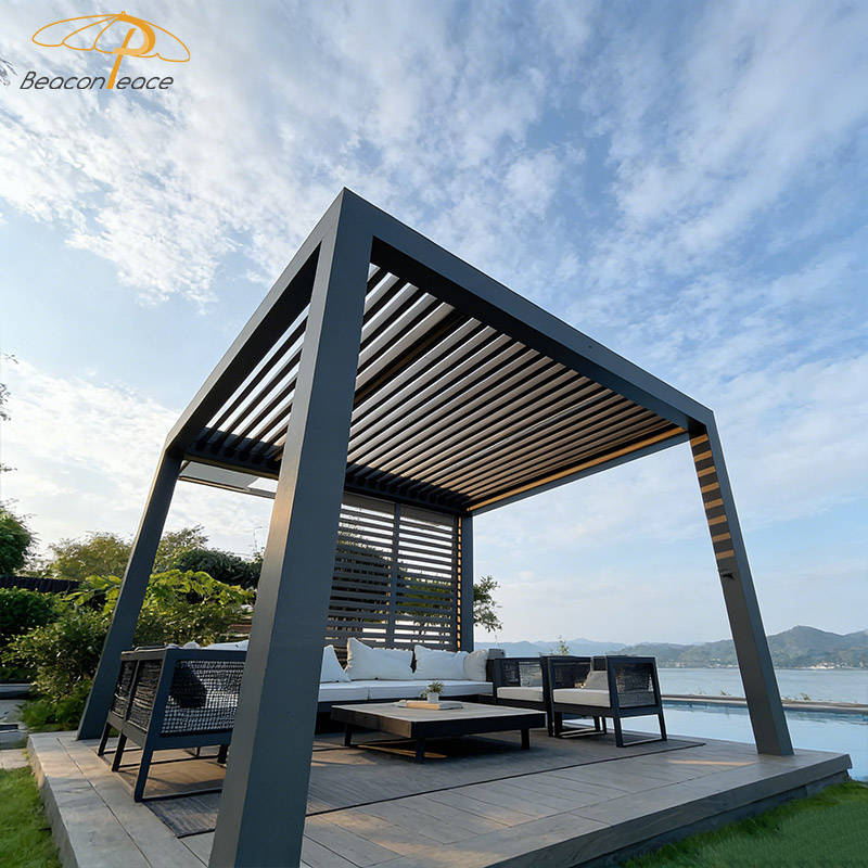 BP8709 Modern Outdoor Furniture Resort Villa Courtayrd Terrace Aluminum Louvered Pergola Gazebo PavilionMOQ :